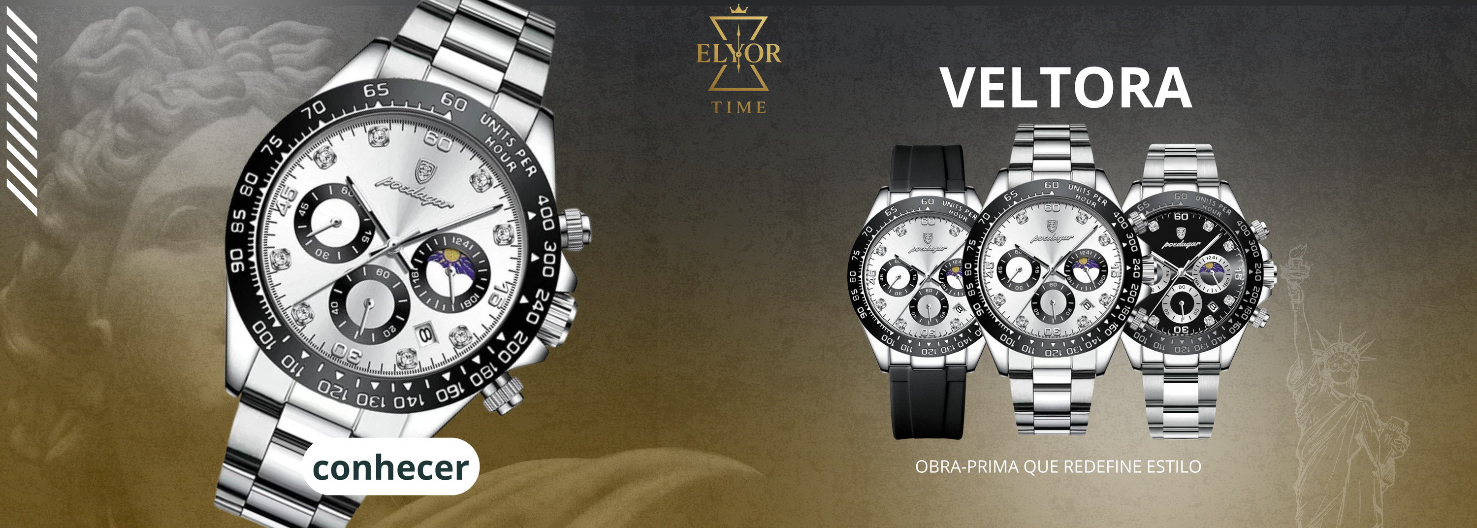 Para encontrar o relógio ideal, pense no que traduz sua personalidade: o estilo que você carrega, o momento em que ele será usado e os detalhes que fazem diferença na sua rotina. Cada peça tem seu próprio caráter — e estamos aqui para guiá-lo na escolha do modelo que realmente combine com você.