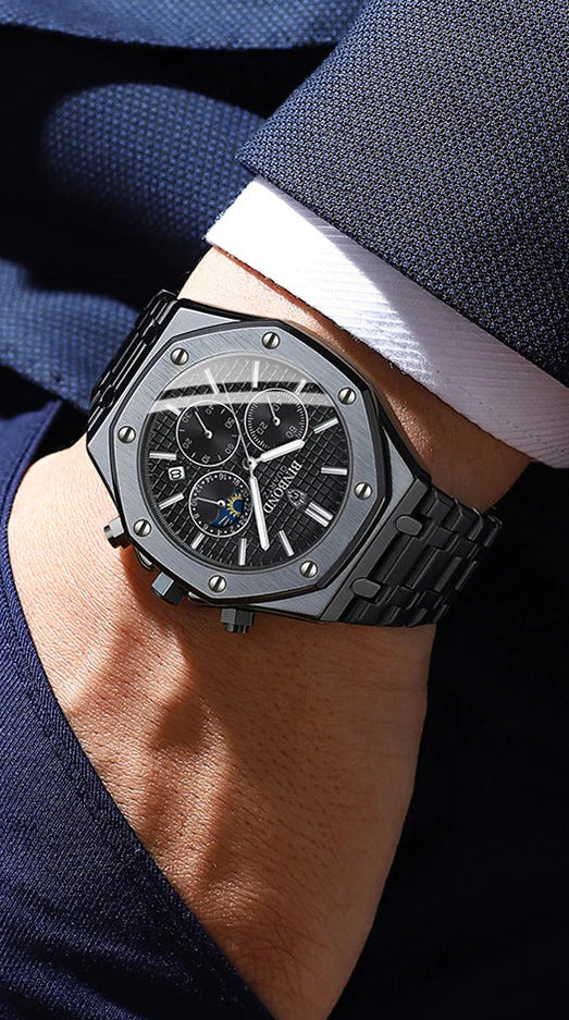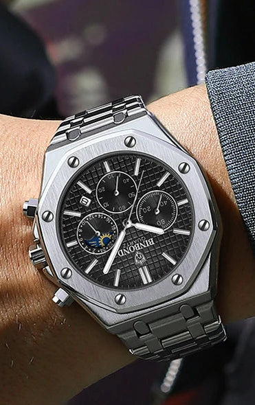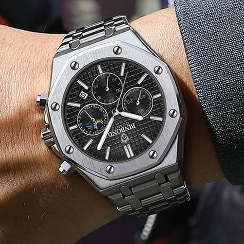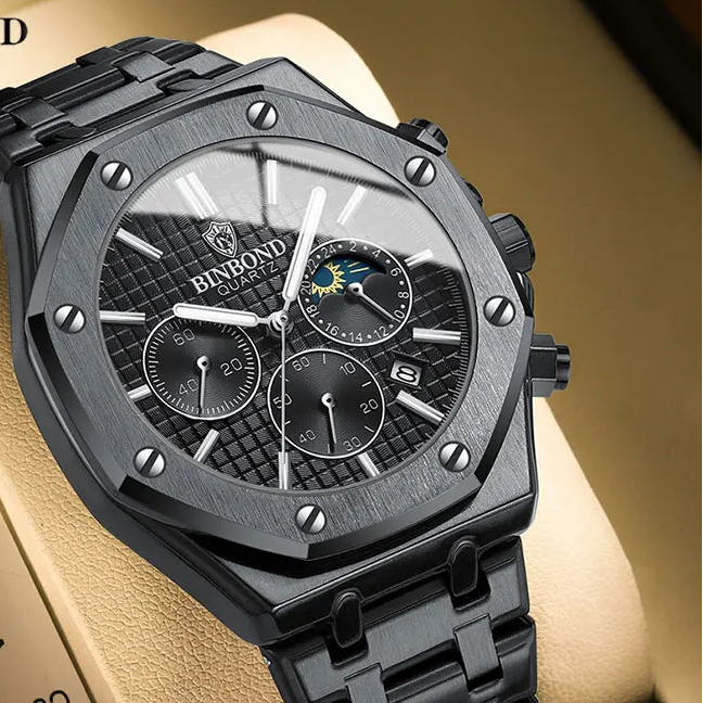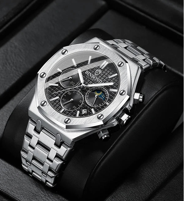 Sinta o poder do tempo em seu pulso. O Relógio BINBOND une design clássico e acabamento moderno, criando uma peça que transmite elegância e confiança em cada detalhe.