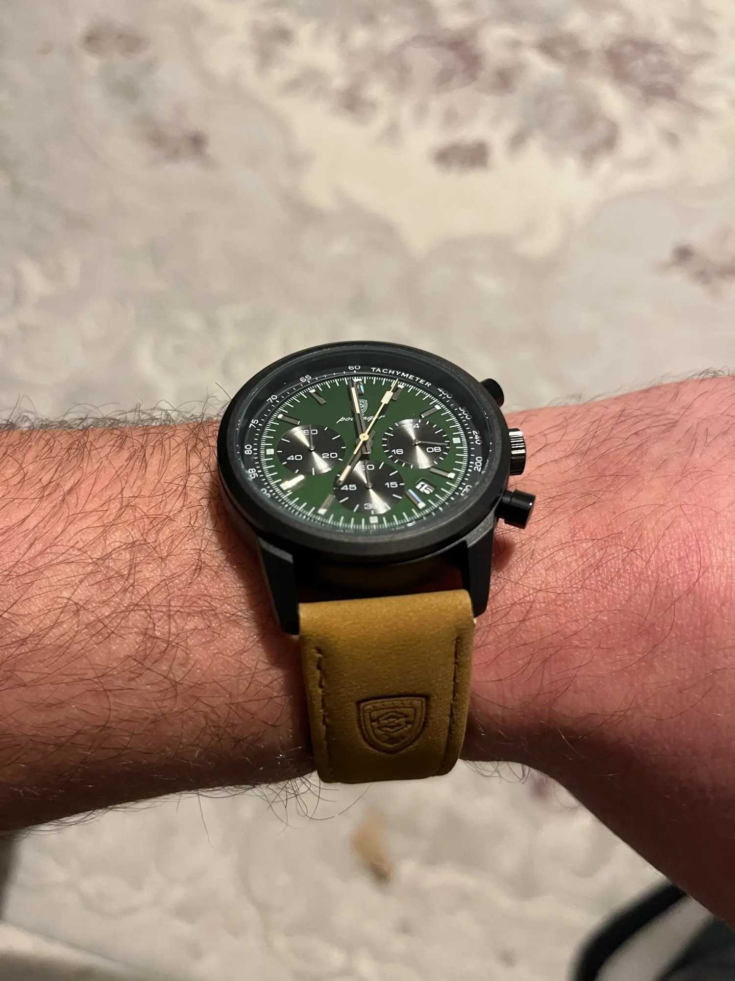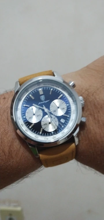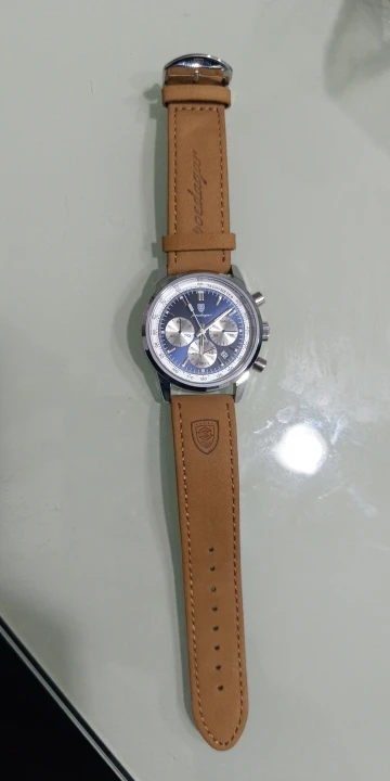 ✦ Funções completas: Cronógrafo, calendário completo, fase lunar, resistência a choques e ponteiros luminosos.